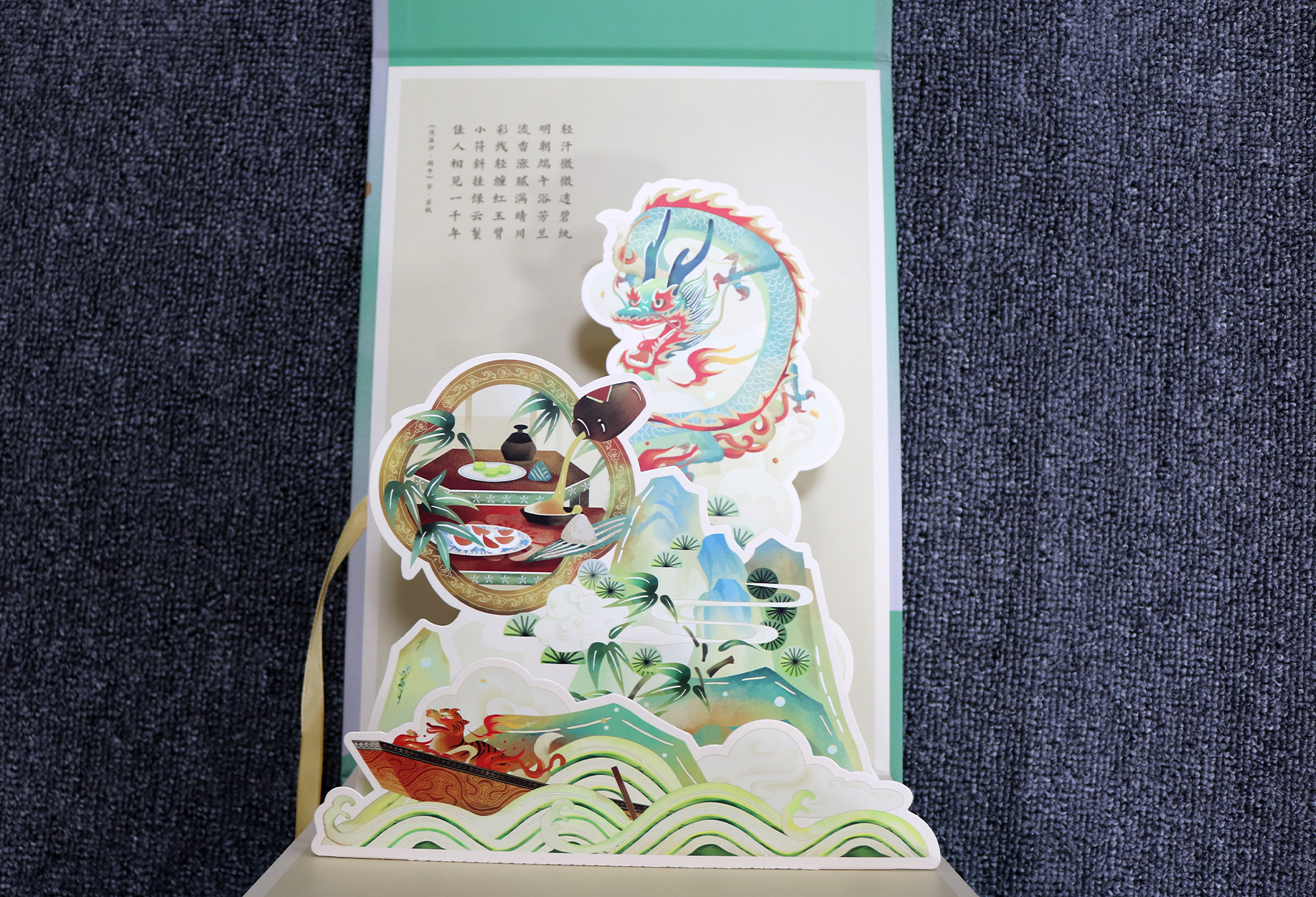 粽子精品禮盒采用書型盒型,裱紙海德堡高精四色印刷+UV工藝。3味立體的龍舟為端午的粽子禮盒起到畫龍點(diǎn)睛的作用,為端午的節(jié)日添加了足夠的儀式感。