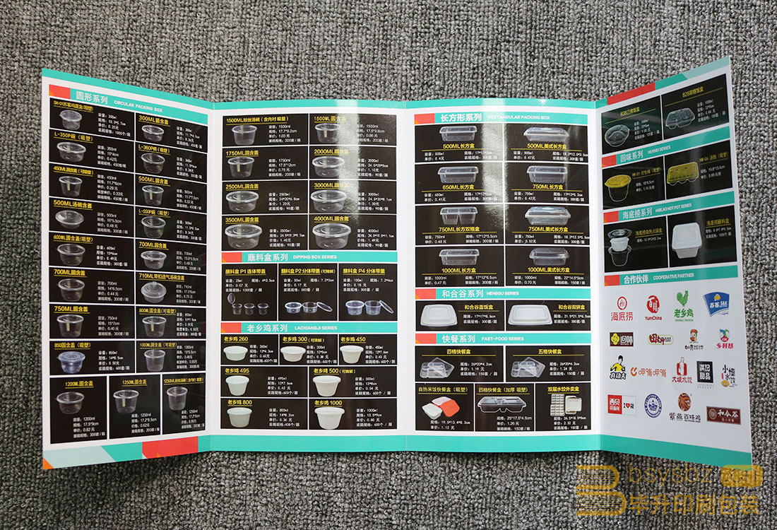 四折頁印刷紙張選用250g銅版紙4色印刷,正面光膜、壓痕、包心折。
