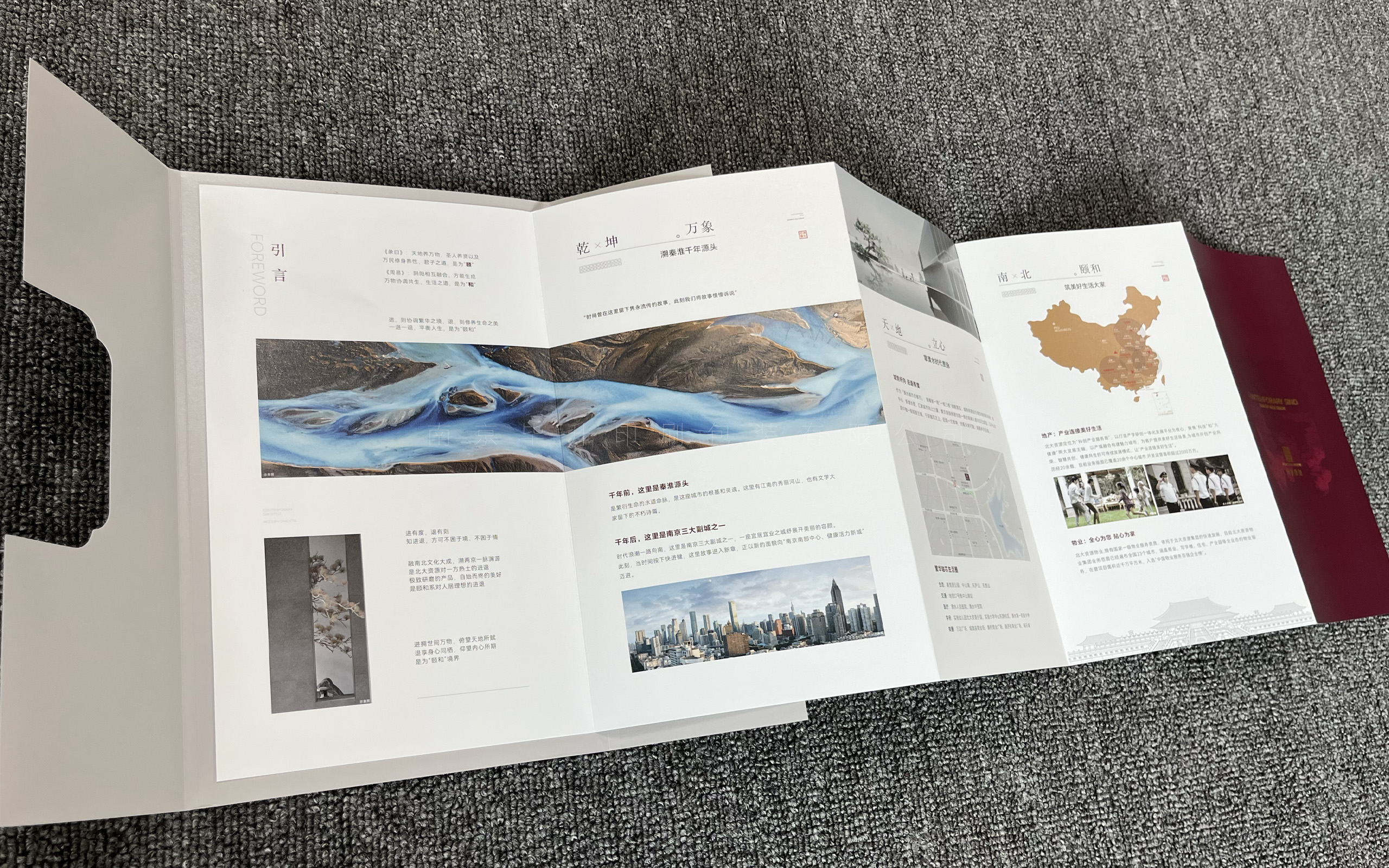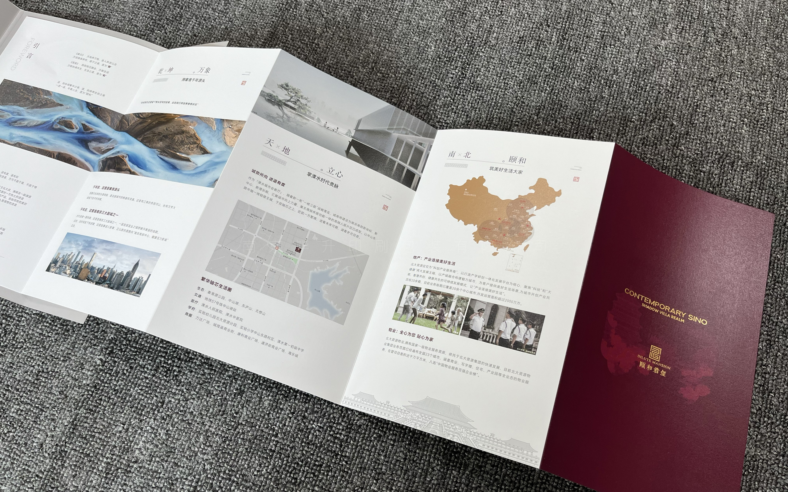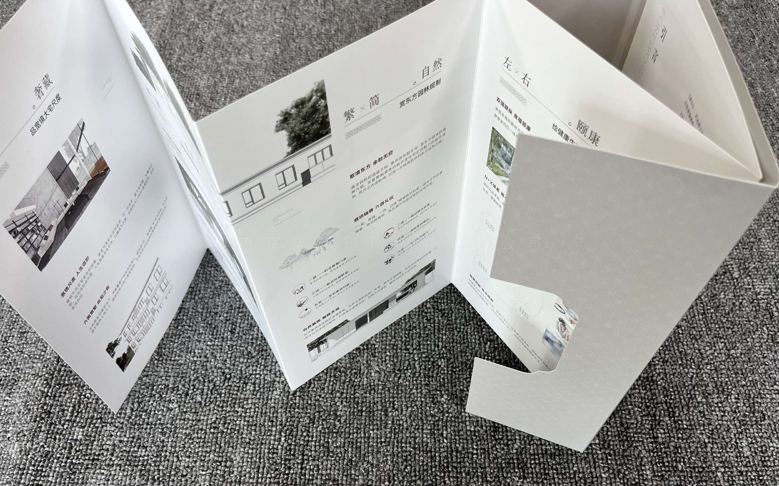 此特種折頁選用優(yōu)質(zhì)進(jìn)口特種藝術(shù)紙,海德堡四色精印刷、uv、燙金、模切、糊等一系列工藝。把折頁糊在一個敞開的大門上,映入眼簾的是燙金的地產(chǎn)logo,設(shè)計非常新穎。南京畢升印刷是一家專業(yè)從事出版書刊書籍印刷、畫冊、單頁、海報、封套印刷、彩色包裝盒、手拎袋、不干膠標(biāo)簽、臺歷、掛歷、特種印刷的企業(yè)。公司擁有多年的技術(shù)經(jīng)驗(yàn),高素質(zhì)的工作團(tuán)隊,能及時為客戶提供完善的售后服務(wù)。南京畢升印刷定制各類樓書高端房地產(chǎn)