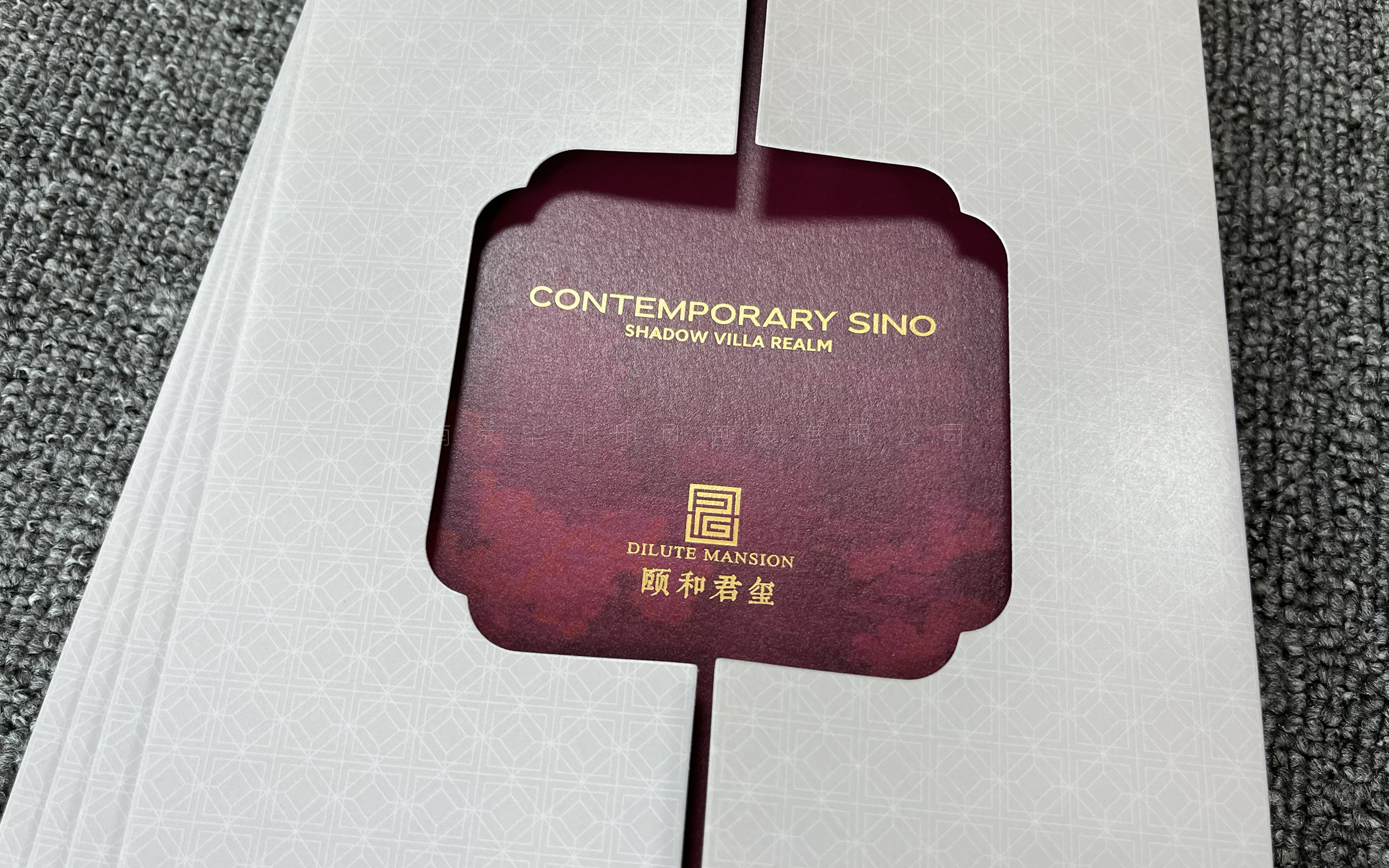 此特種折頁選用優(yōu)質(zhì)進(jìn)口特種藝術(shù)紙,海德堡四色精印刷、uv、燙金、模切、糊等一系列工藝。把折頁糊在一個敞開的大門上,映入眼簾的是燙金的地產(chǎn)logo,設(shè)計非常新穎。