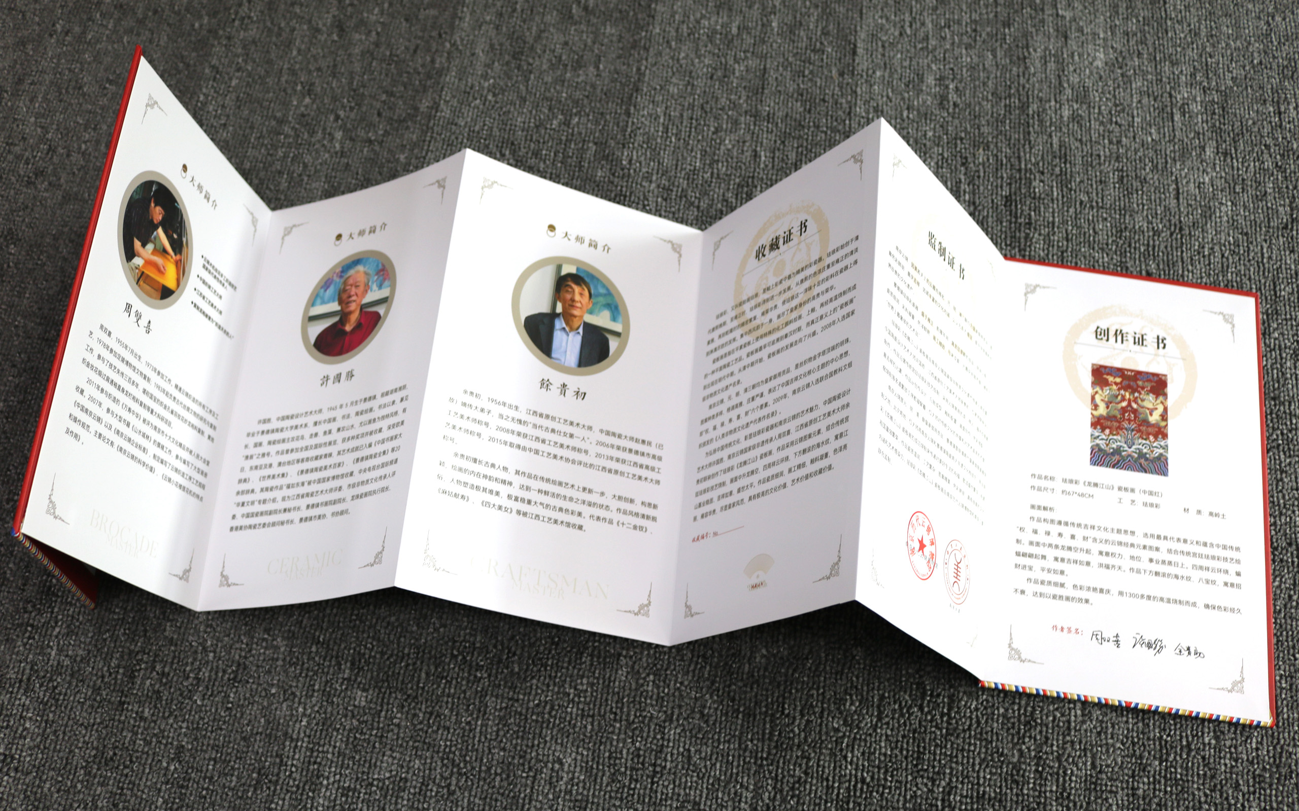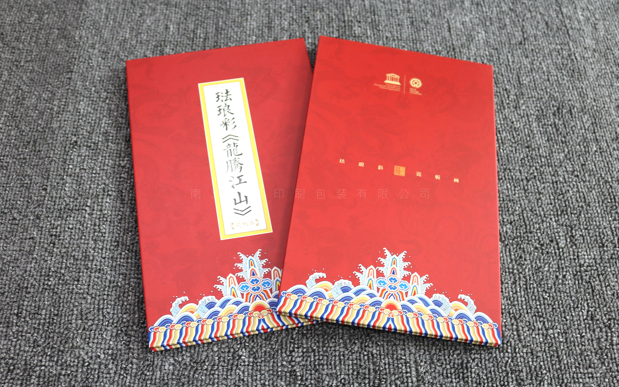 琺瑯彩《四海升平》《龍騰江山》瓷板畫定制,展開尺寸120*28.5cm,六折七頁。海德堡四色精印刷、啞膜、UV印刷,裱3mm灰板紙精裝成型