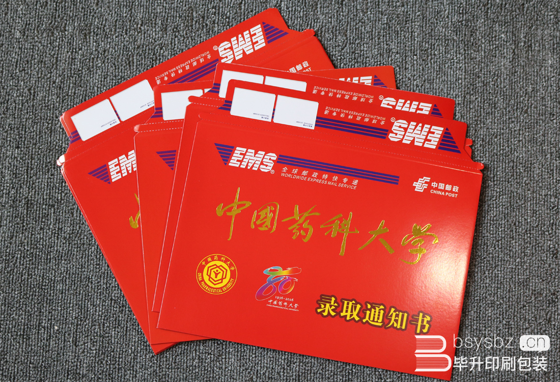 中國藥科大學(xué)錄取通知書、信封、快遞袋印刷