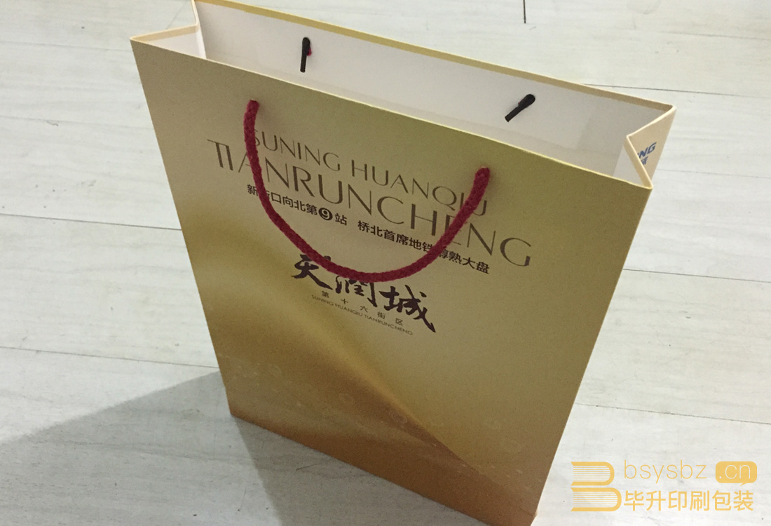 南京畢升印刷為房地產(chǎn)公司印刷的高端手提袋質(zhì)優(yōu)、價低,獲得大量的市場訂單,南京印刷首選畢升印刷??紤]到地產(chǎn)企業(yè)的特殊性,天潤城手提袋采用300g白卡印刷,紙張更加的硬挺,制作出來的手提袋更加結(jié)實有檔次,符合蘇寧地產(chǎn)品牌的格調(diào)。