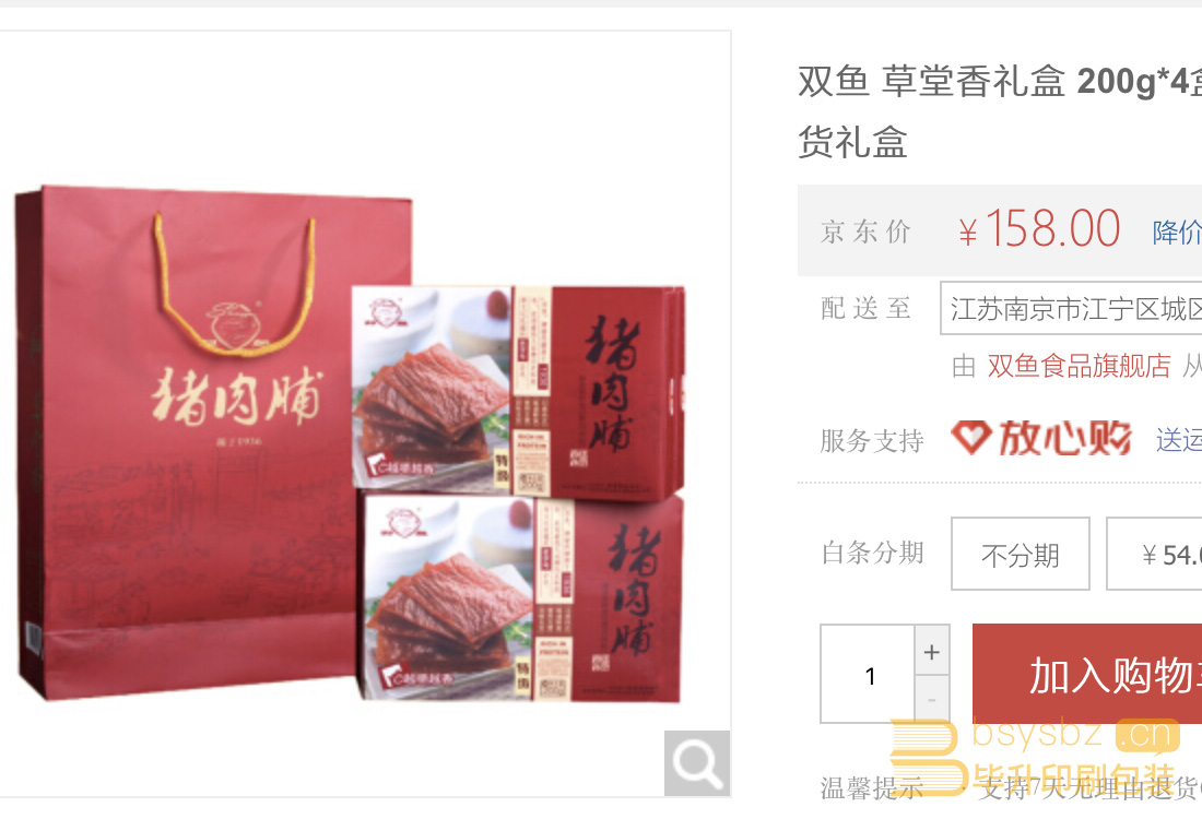 雙魚豬肉脯手提袋、雙魚草堂香禮盒印刷京東有售