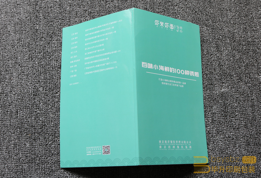 蝦米蝦面菜單印刷、蝴蝶裝畫冊印刷、南京軟精裝畫冊印刷